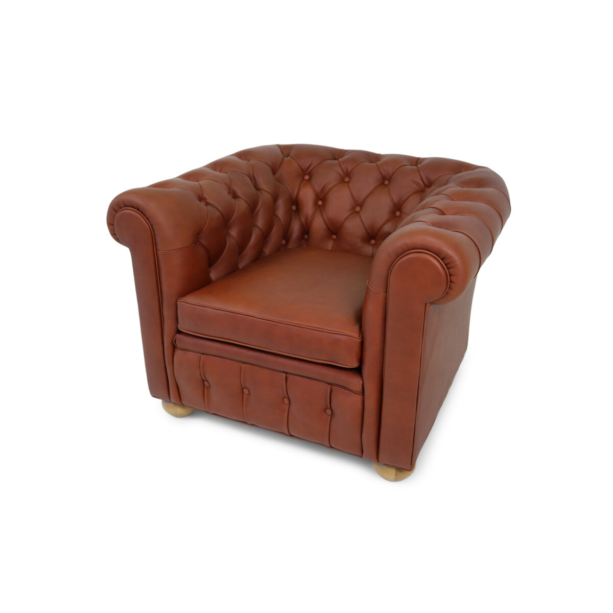 Klassisk fåtölj med djuphäftad rygg. Fiberdundynor och resårhus ger extra sittkomfort och hållbarhet. För såväl hem som offentlig miljö. Gedigen stomme i massivträ för kvalitet i generationer. Klotben eller raka ben i betsad bok.
