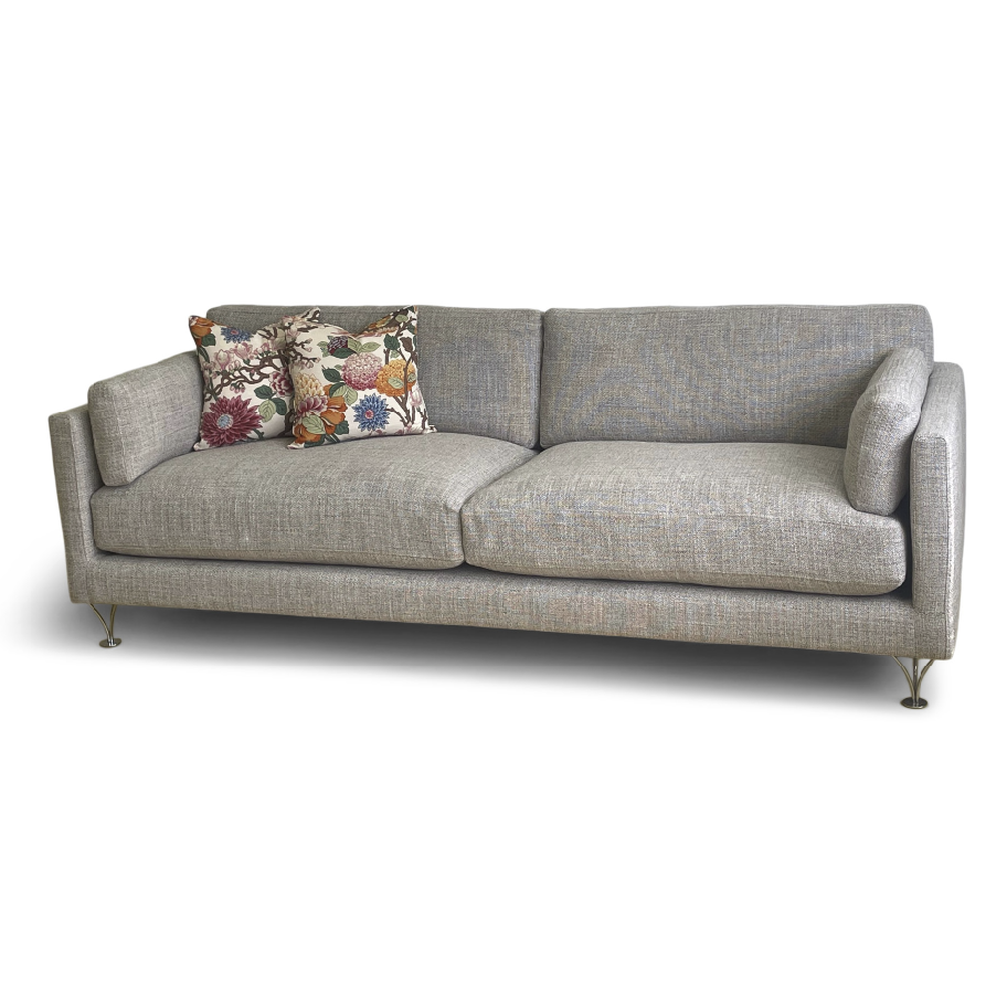 Stilren klassisk soffa och fåtölj med mycket hög sittkomfort. Dynorna är stoppade med extra mycket dun som är svept runt en kraftig kärna av kallskum. Utbyggbar till hörnsoffa.